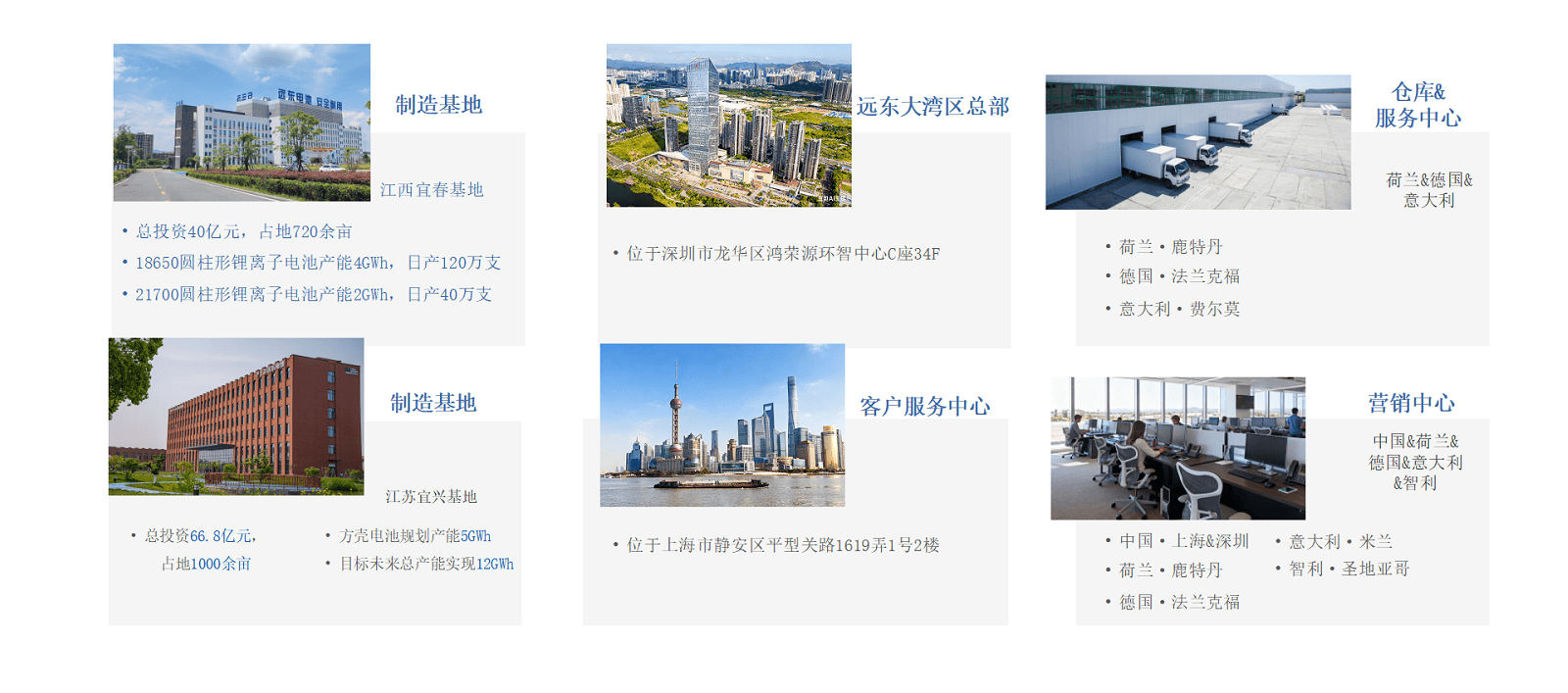 遠東電池創(chuàng)立于2009年,是遠東股份(股票代碼:600869)旗下子公司。遠東電池深耕新能源領(lǐng)域,是一家集研發(fā)、生產(chǎn)、銷售于一體的全球化電池及儲能系統(tǒng)服務商。公司實現(xiàn)從電芯到儲能系統(tǒng)的全線布局,致力于為全球客戶提供安全、可靠、可持續(xù)的儲能及智慧能源管理服務,場景覆蓋源網(wǎng)側(cè)、工商業(yè)及戶用。 遠東電池以“共建共享安全 綠色 美好生活”為使命,持續(xù)探索儲能技術(shù)邊界,助力全球碳中和目標,致力于成為世界領(lǐng)先的電池及儲能系統(tǒng)服務商。
